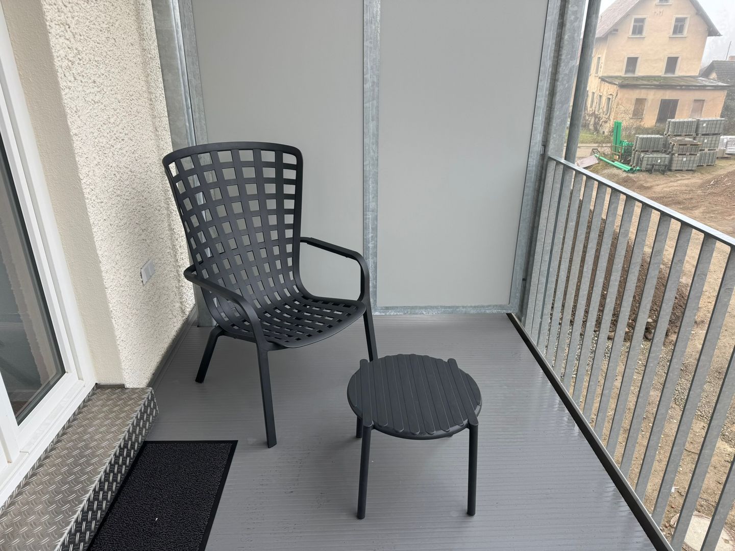 Der überdachte Balkon bietet einen schönen Blick ins Grüne. Ein kostenloser, überdachter Privatparkplatz (Carport) gehört zum Apartment. Zusätzlich stehen in der Umgebung sowie gegenüber vom Haus weitere kostenfreie Parkmöglichkeiten zur Verfügung.