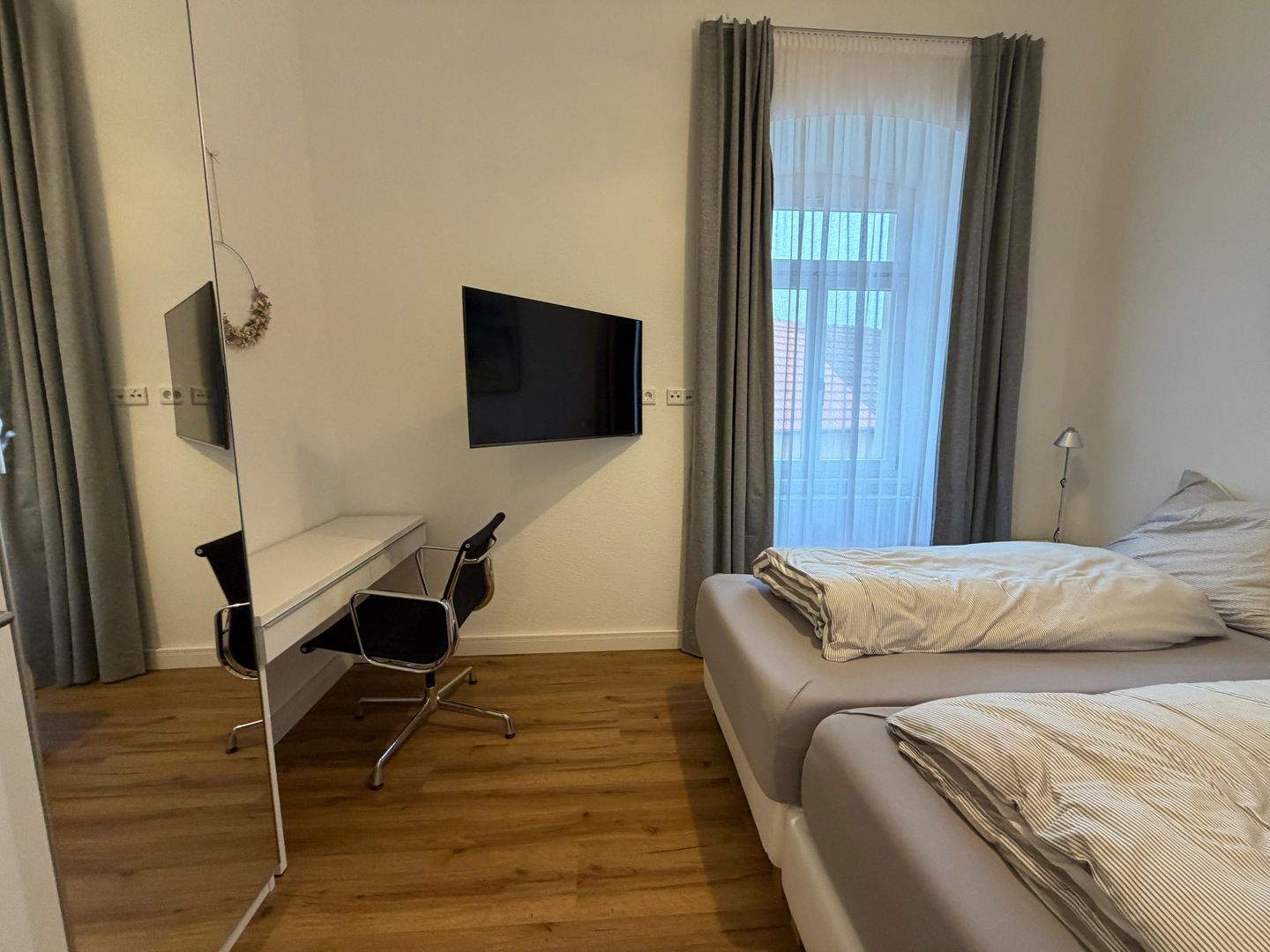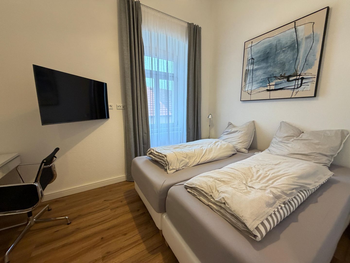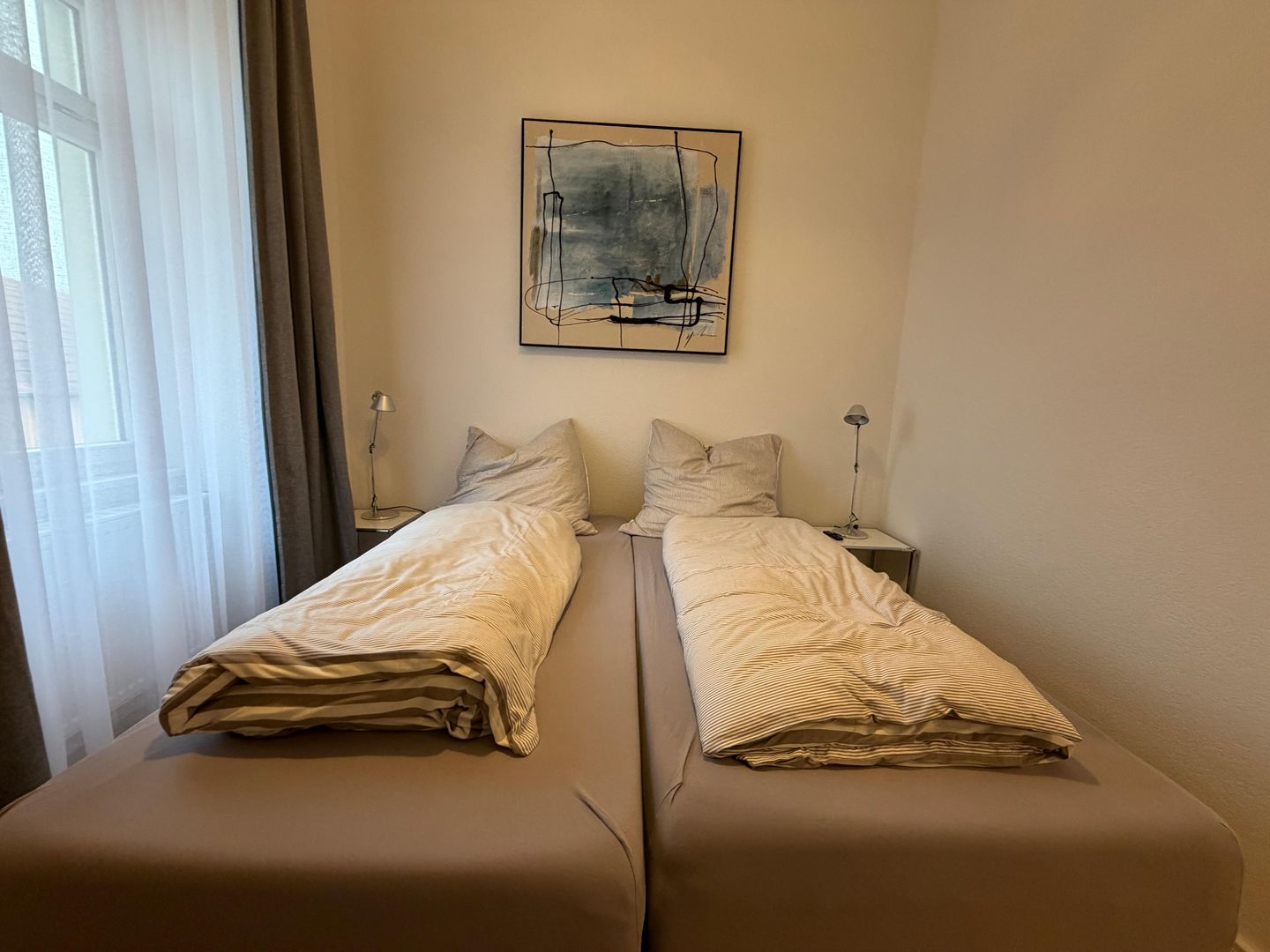 Das Apartment bietet Platz für bis zu sechs Personen und eignet sich ideal für Paare, Familien oder anspruchsvolle Gäste. Zwei Schlafzimmer sowie zusätzliche Schlafmöglichkeiten im Wohnbereich sorgen für ausreichend Raum. Bitte beachten Sie, dass der Wohnbereich mit Schlafcouch nicht vollständig abdunkelbar ist.