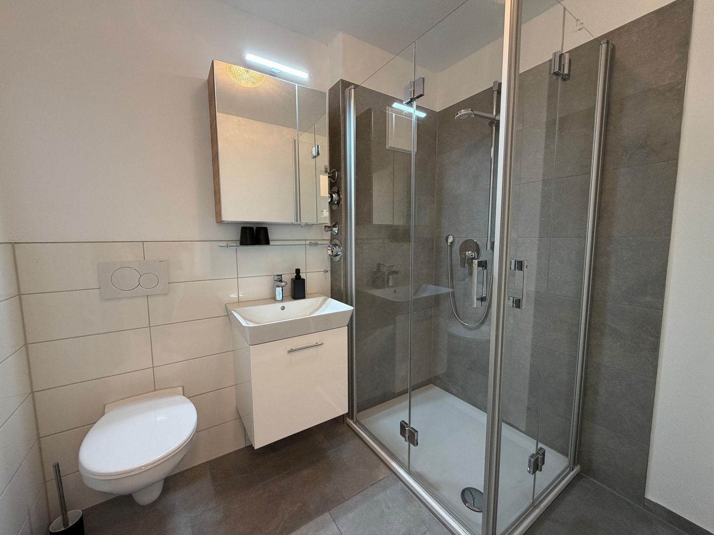 Das Badezimmer verfügt über eine bodengleiche Dusche, WC, Waschbecken und Spiegel; warmes Wasser ist selbstverständlich verfügbar. Ein Haartrockner gehört zur Ausstattung. Für längere Aufenthalte steht Ihnen außerdem eine Waschmaschine zur Eigennutzung zur Verfügung. Rauchmelder und ein Staubsauger sind ebenfalls vorhanden.