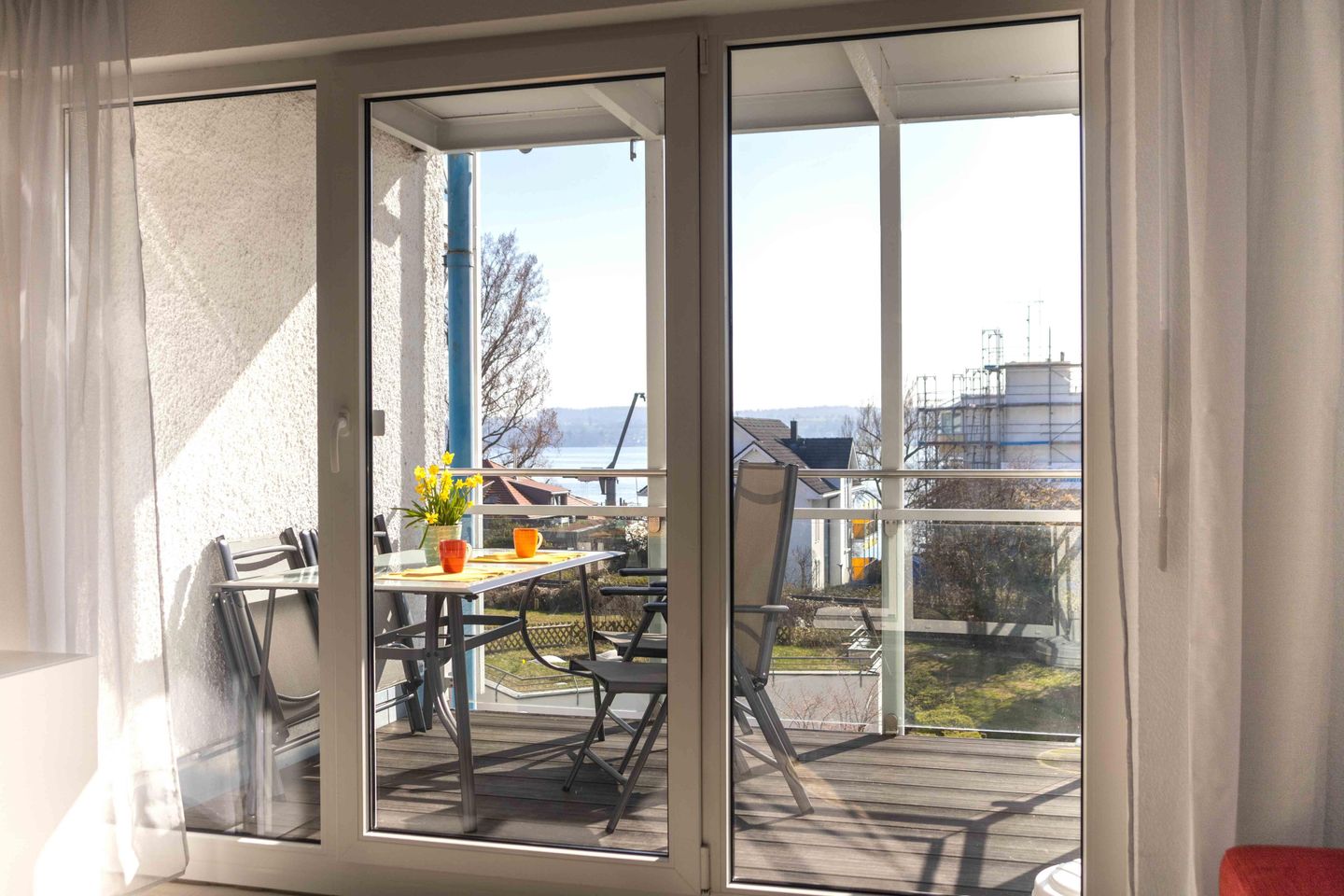 Zu den besonderen Vorzügen dieser Ferienwohnung zählt der überdachte und geschlossene Balkon mit Gartenmöbeln. Dieser bietet Ihnen einen angenehmen und geschützten Aufenthaltsbereich im Freien, begleitet von eingeschränktem See-, Berg- und Gartenblick, sodass Sie die Atmosphäre des Bodensees in entspannter Privatsphäre genießen können.