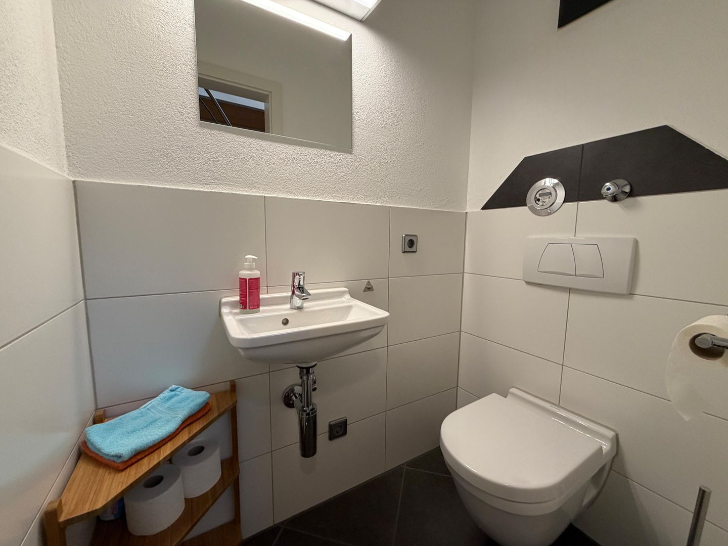 Die Küche ist offen zum Wohnzimmer gestaltet und vollständig auf Selbstversorgung ausgelegt: 4-Platten-Herd, Backofen (elektrisch), Kühlschrank mit Gefrierfach, Spülmaschine, Kaffeemaschine sowie Espressomaschine (Kaffeevollautomat), Wasserkocher, Toaster, Mixer und Küchenutensilien inklusive Geschirr, Besteck und Geschirrtüchern. Im Bad finden Sie Dusche, Badewanne, WC, Waschbecken, Spiegel und Kosmetikspiegel, warmes Wasser, Fenster sowie einen Haartrockner; Handtücher, Badetücher und Bettwäsche sind vorhanden. Waschmaschine und Trockner stehen zur Eigennutzung bereit, ebenso Wäscheständer, Reinigungsmittel und ein Staubsauger.